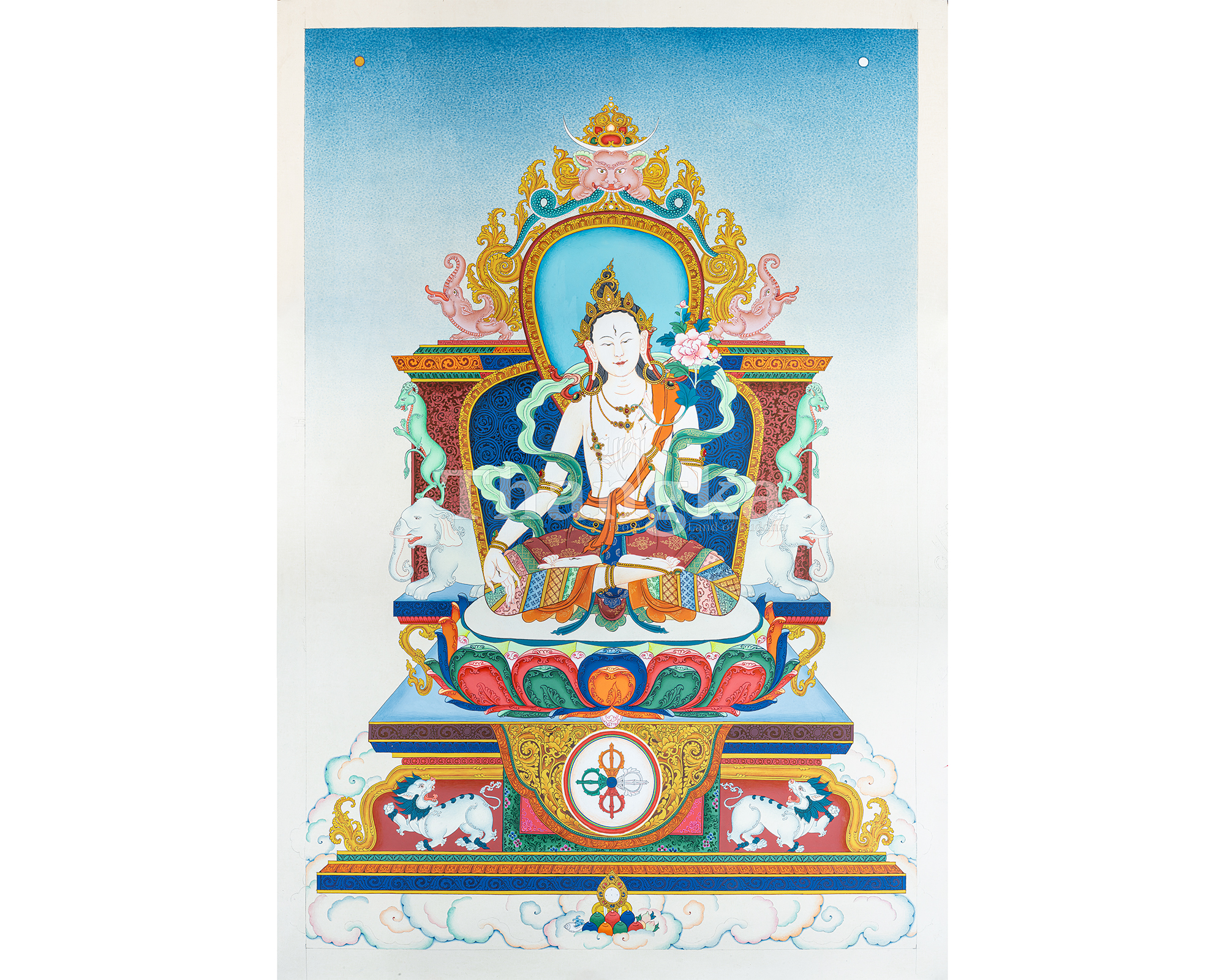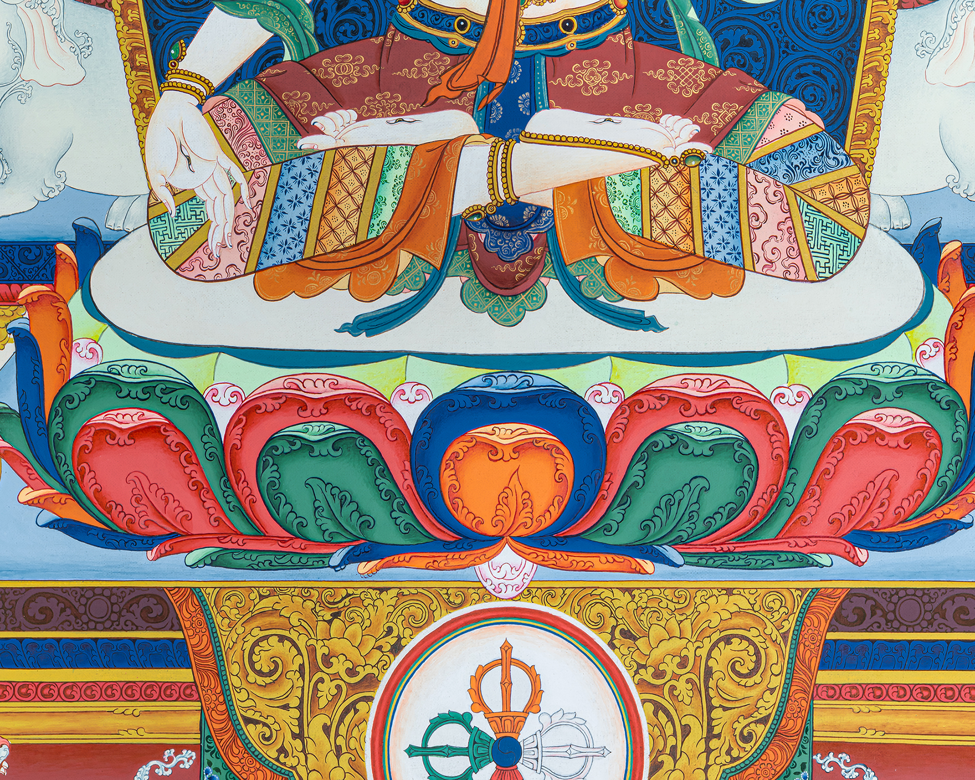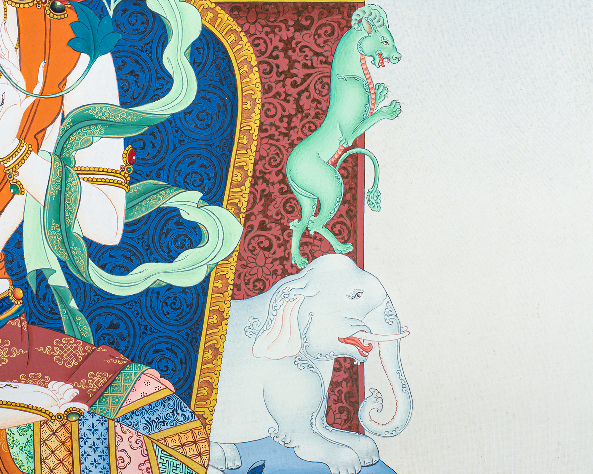 P.S. All thankas are painted taking references from Buddhist books following the correct iconography and by master artists, making it authentic traditional handmade Tibetan art. The subtle facial expression is one factor to distinguish the real effort put into creating this masterpiece.
