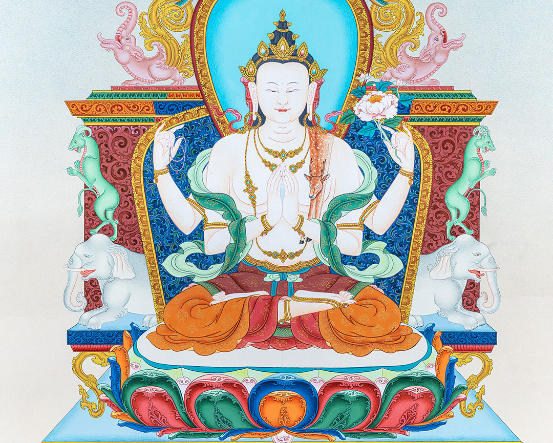 Hand Painted Thangka of Chenrezig I Bodhisattva of Compassion I Traditional Art