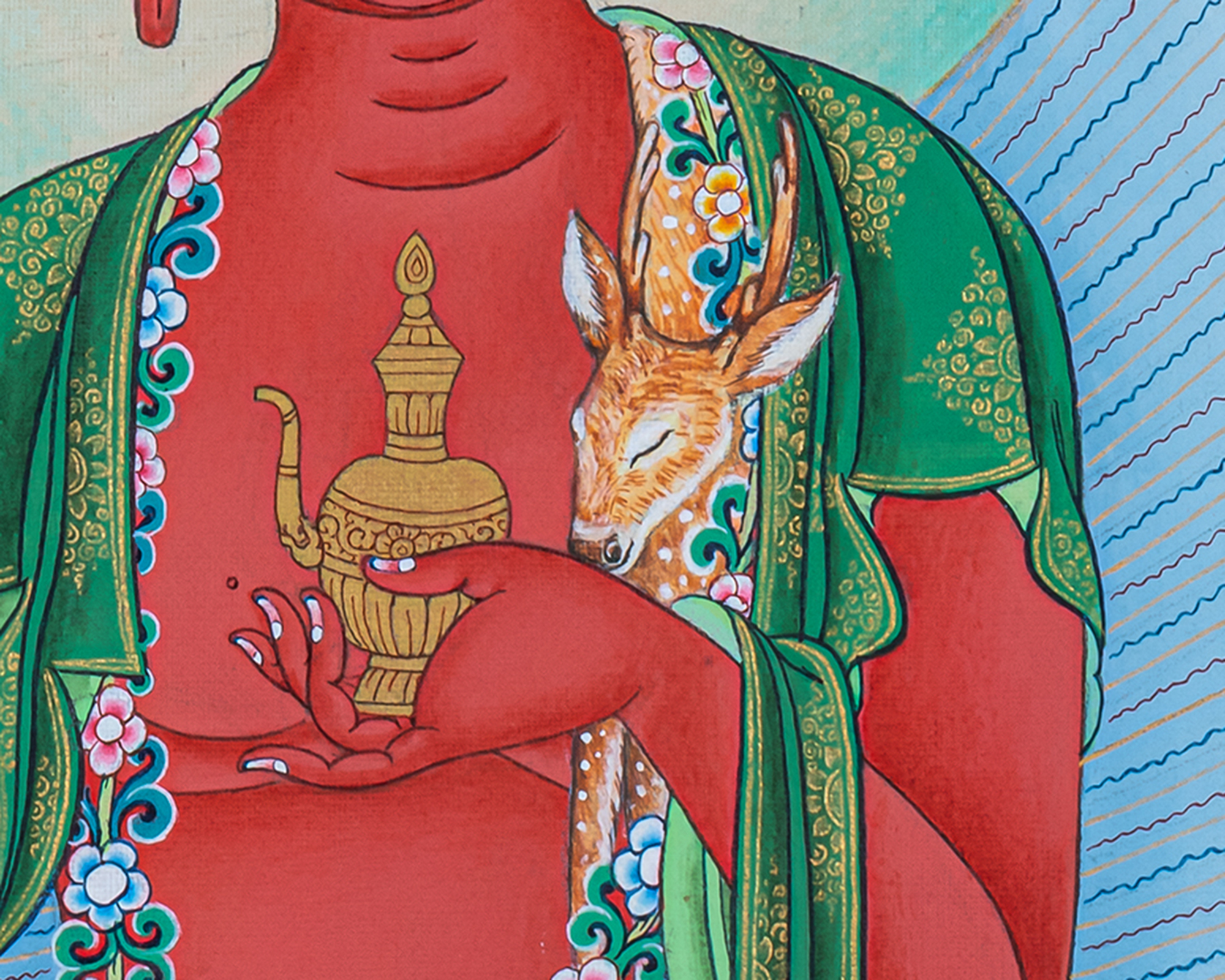 - 100% hand-painted with references from Buddhist books, iconography, and master artists.